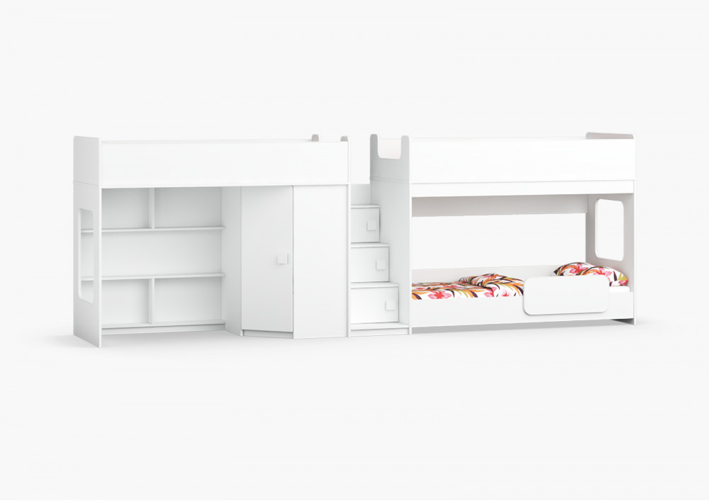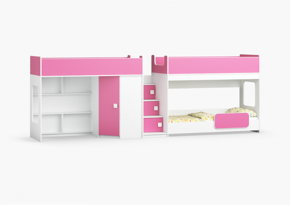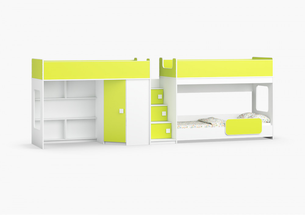 Две кровати, шкаф, игровая зона – одна лестница. Идеальный вариант для троих!